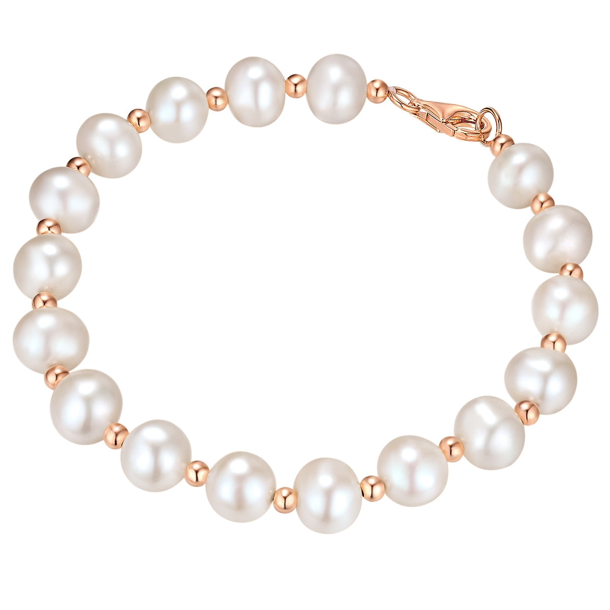 Armband Sterling Silber roségold Süßwasser-Zuchtperle weiß