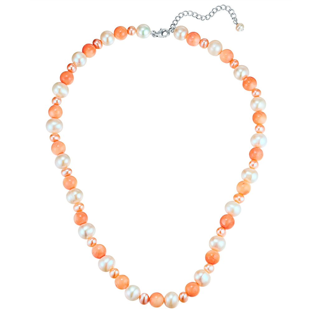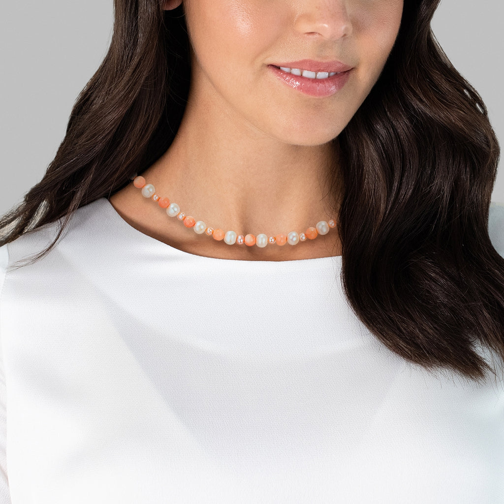 Kette Sterling Silber Süßwasser-Zuchtperle weiß rosa Koralle peach