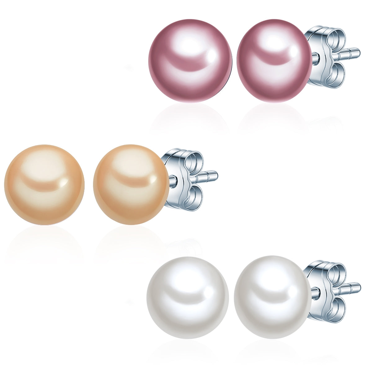 3er Set Ohrstecker Sterling Silber Süßwasser-Zuchtperlen multicolor
