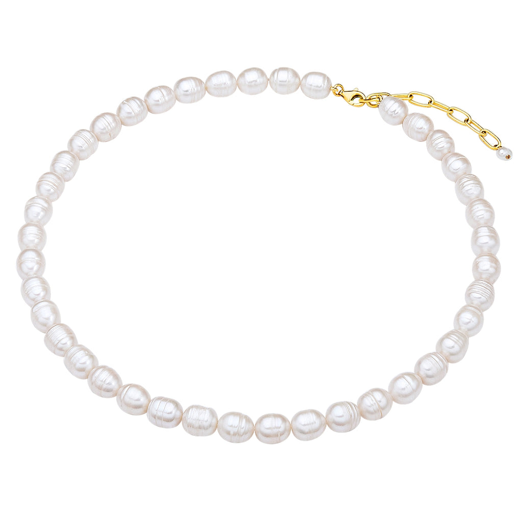 Kette Sterling Silber gelbgold Süßwasser-Zuchtperlen weiß
