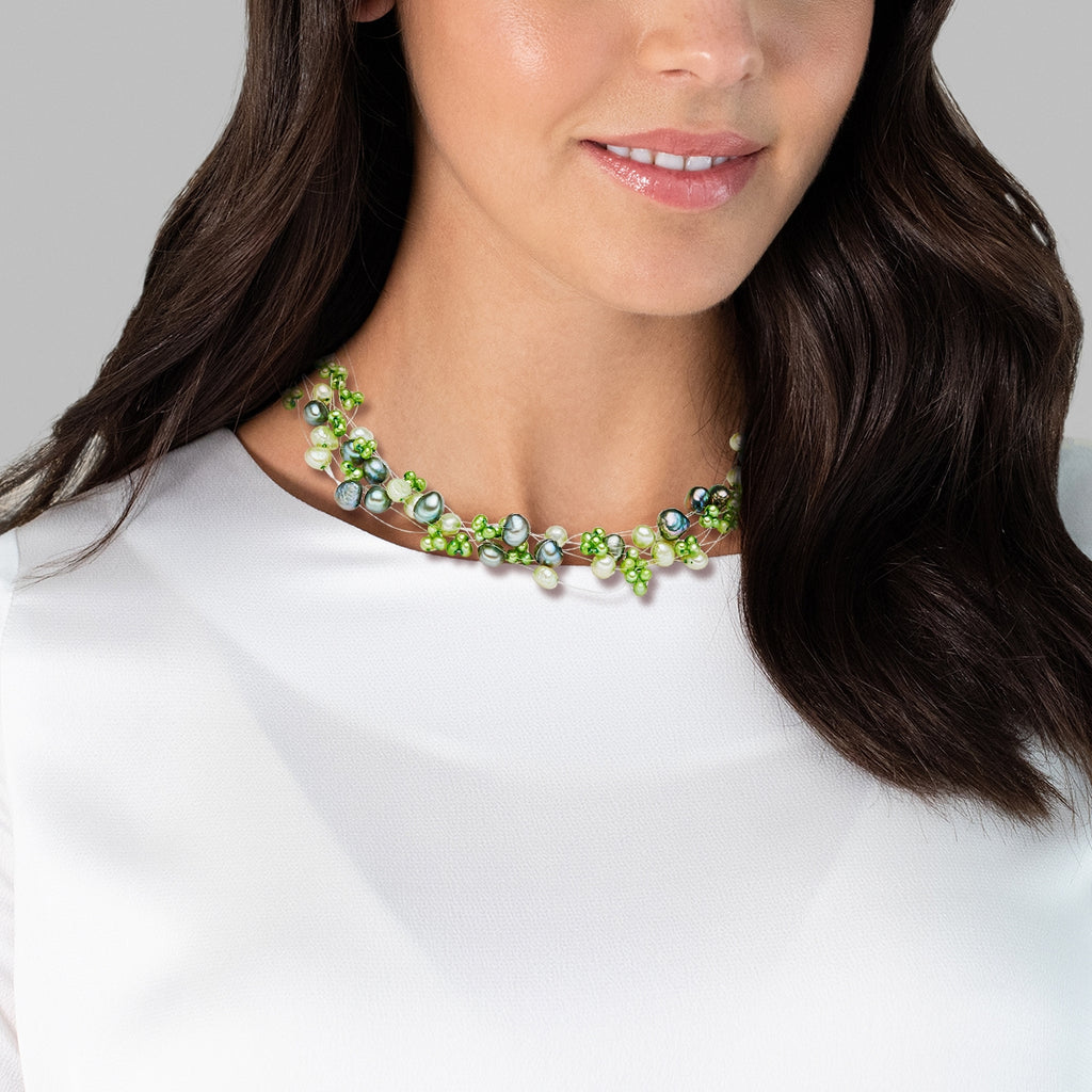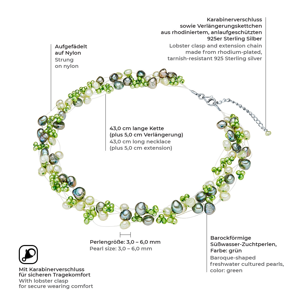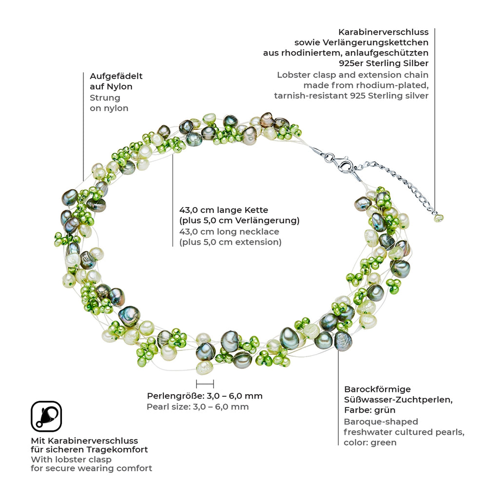 Kette Sterling Silber Süßwasser-Zuchtperle grün