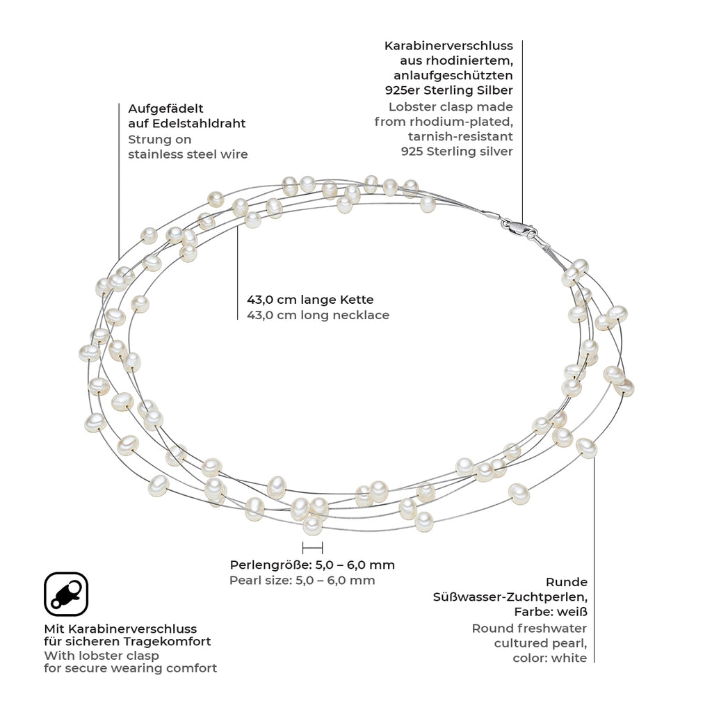 Kette Sterling Silber Süßwasser-Zuchtperle weiß