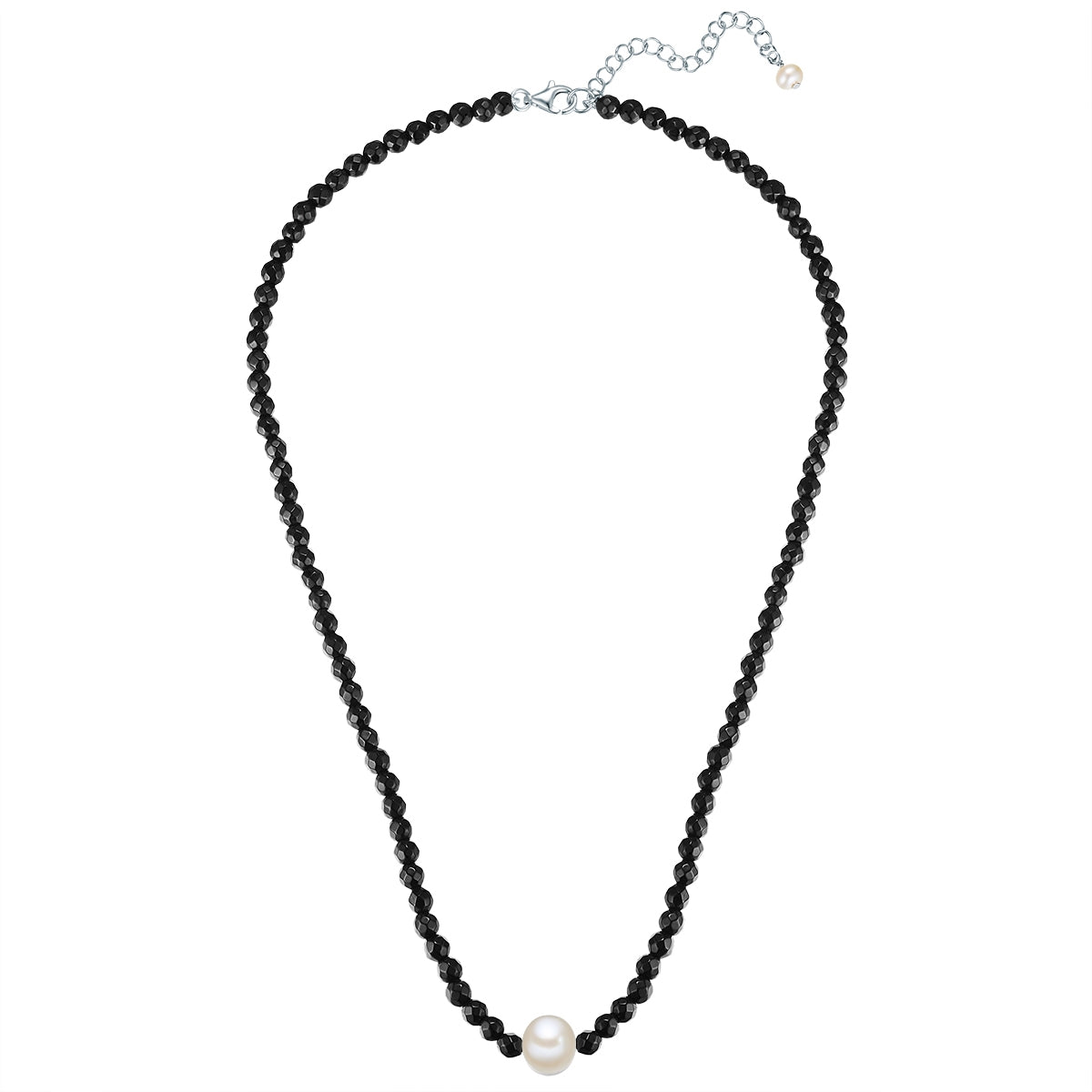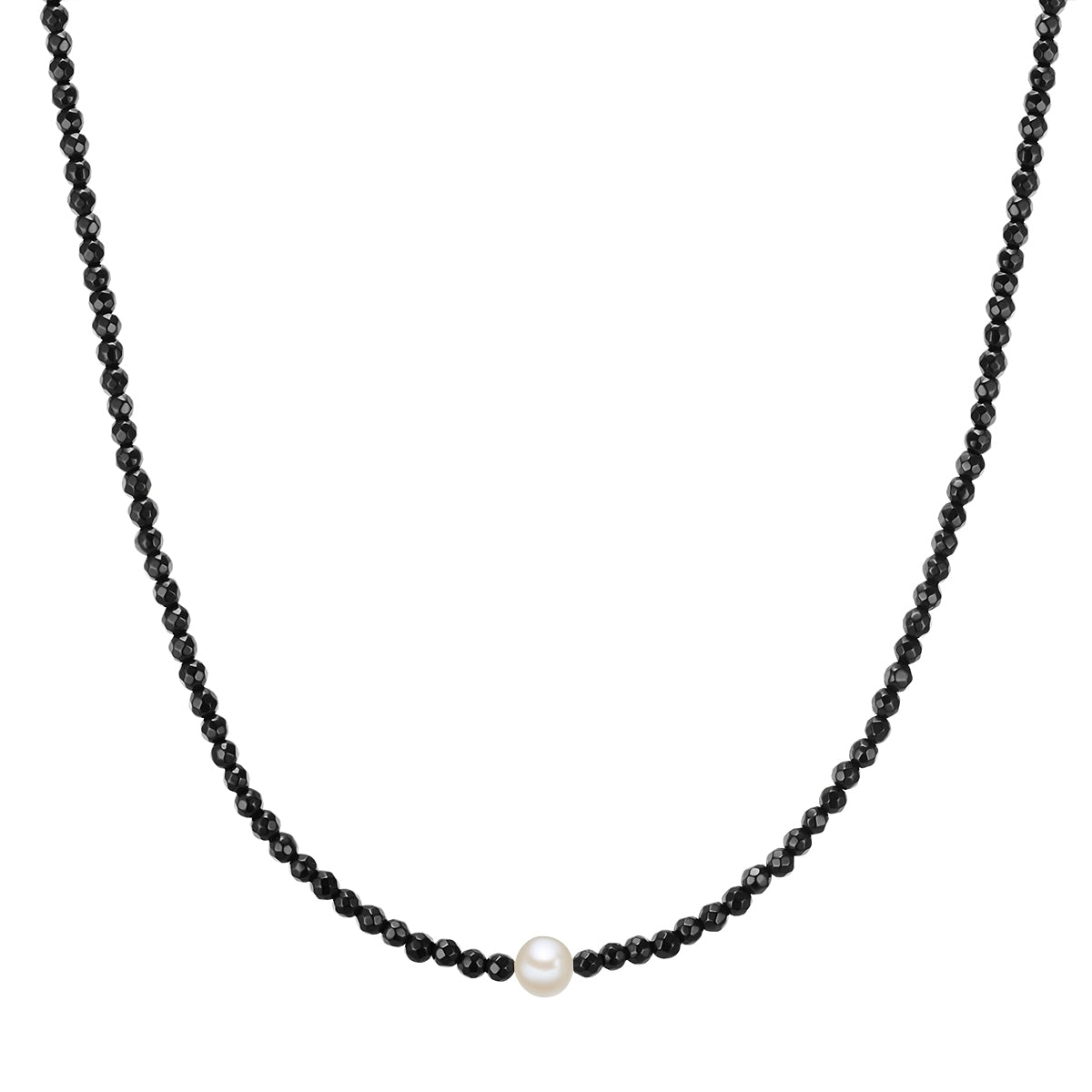 Kette Sterling Silber Süßwasser-Zuchtperle weiß Achat schwarz