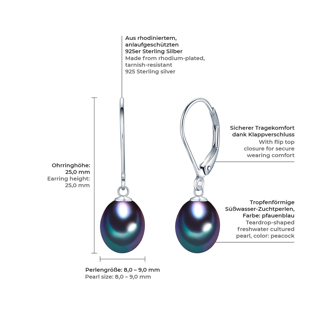 Ohrhänger Sterling Silber Süßwasser-Zuchtperle pfauenblau