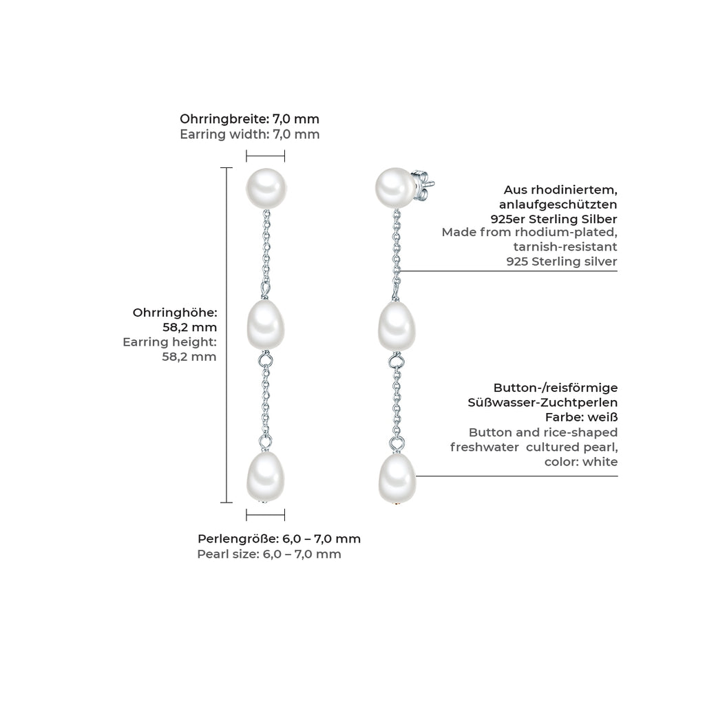 Ohrhänger Sterling Silber Süßwasser-Zuchtperlen weiß