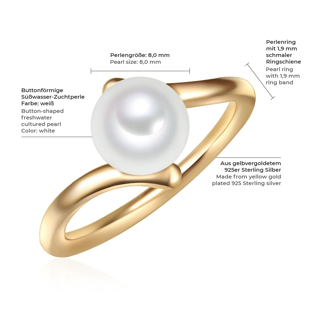Ring Sterling Silber gelbgold Süßwasser-Zuchtperle weiß