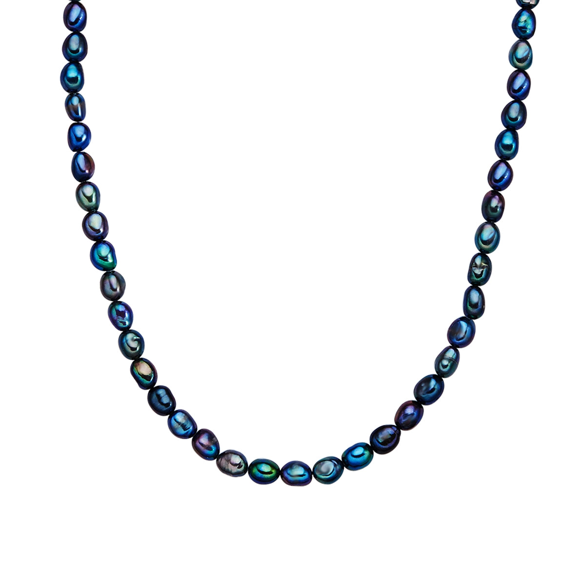 Kette Sterling Silber gelbgold Süßwasser-Zuchtperlen pfauenblau