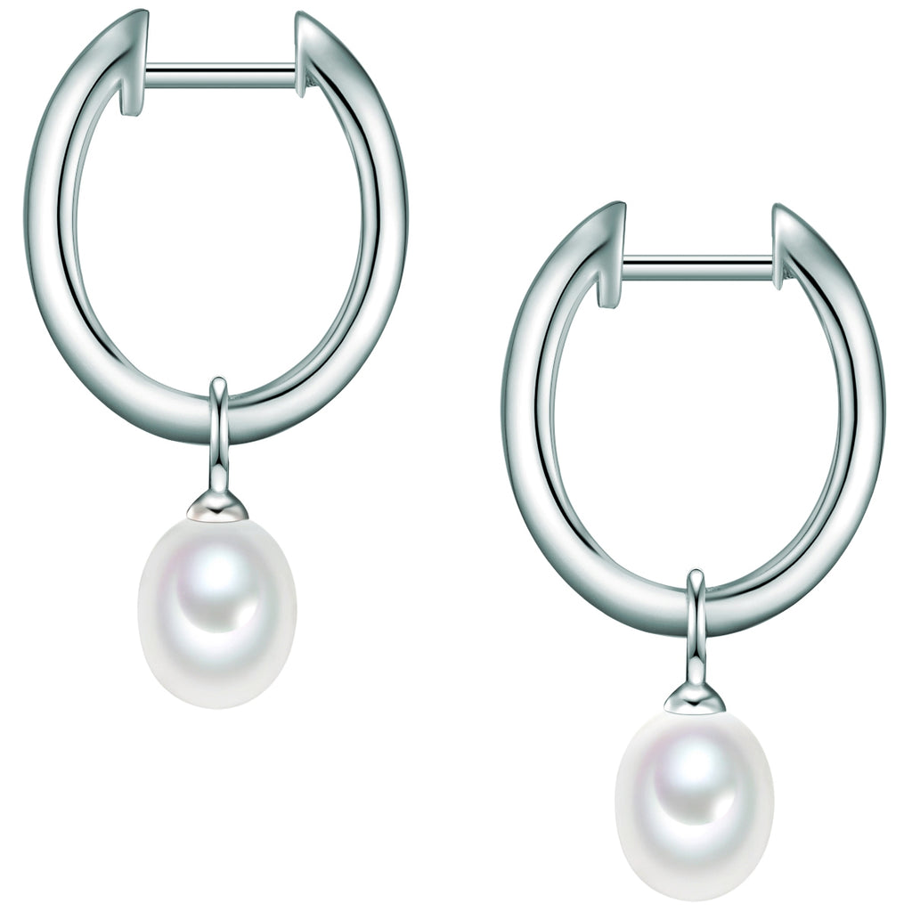 Creolen Sterling Silber Süßwasser-Zuchtperle weiß Zirkonia weiß