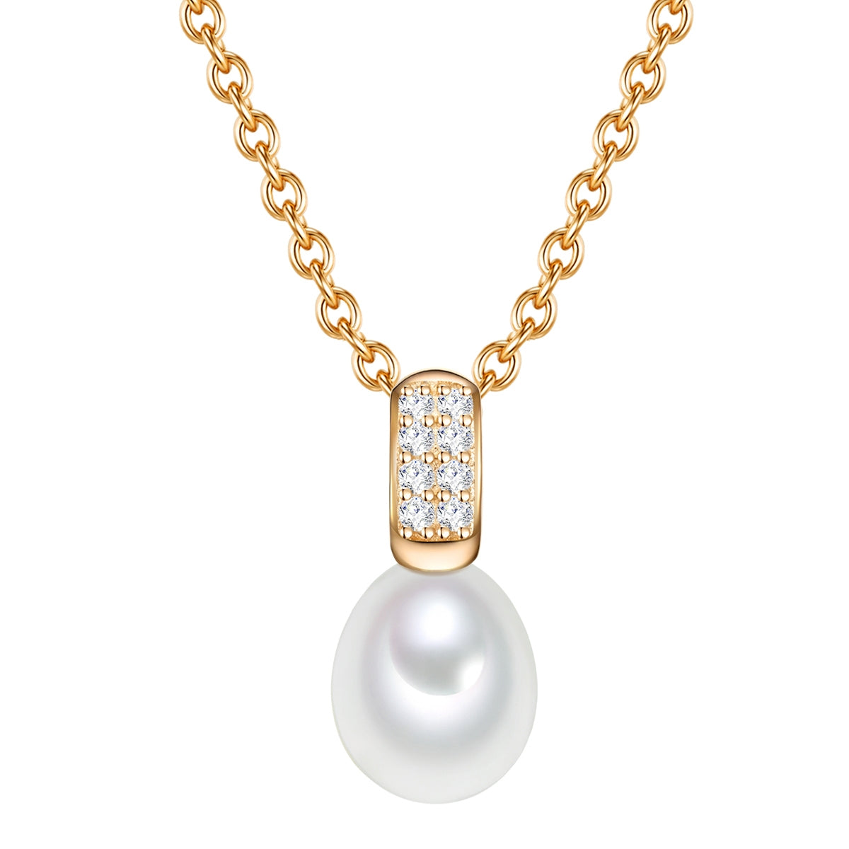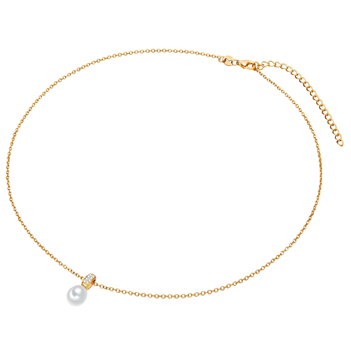 Kette mit Anhänger Sterling Silber gelbgold Süßwasser-Zuchtperle weiß Zirkonia weiß