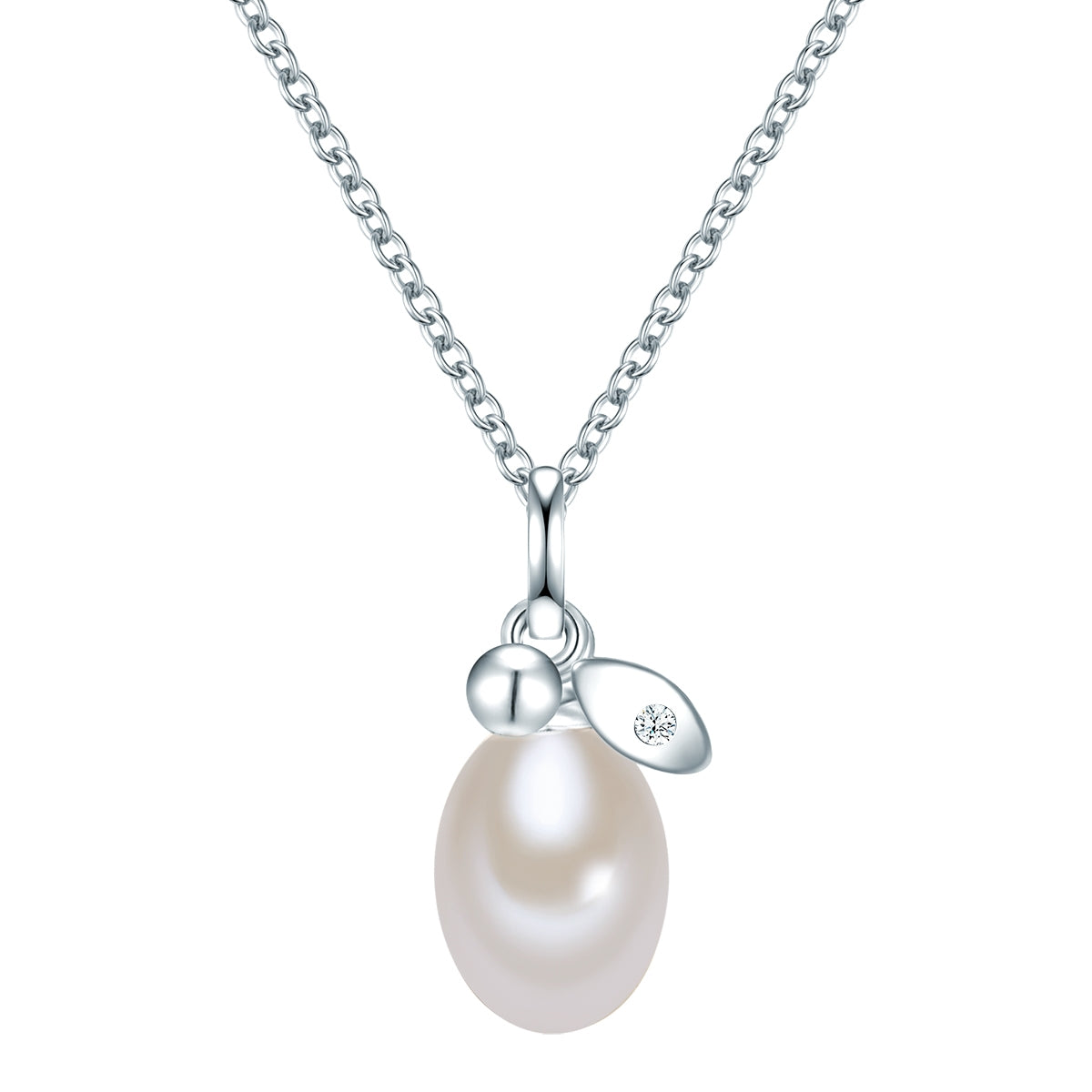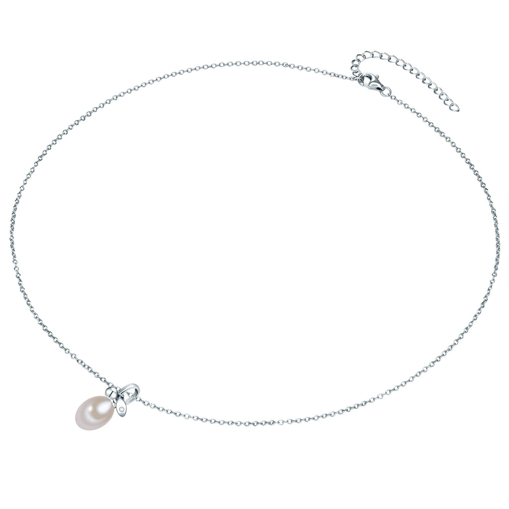 Kette mit Anhänger Sterling Silber Süßwasser-Zuchtperle weiß Zirkonia weiß