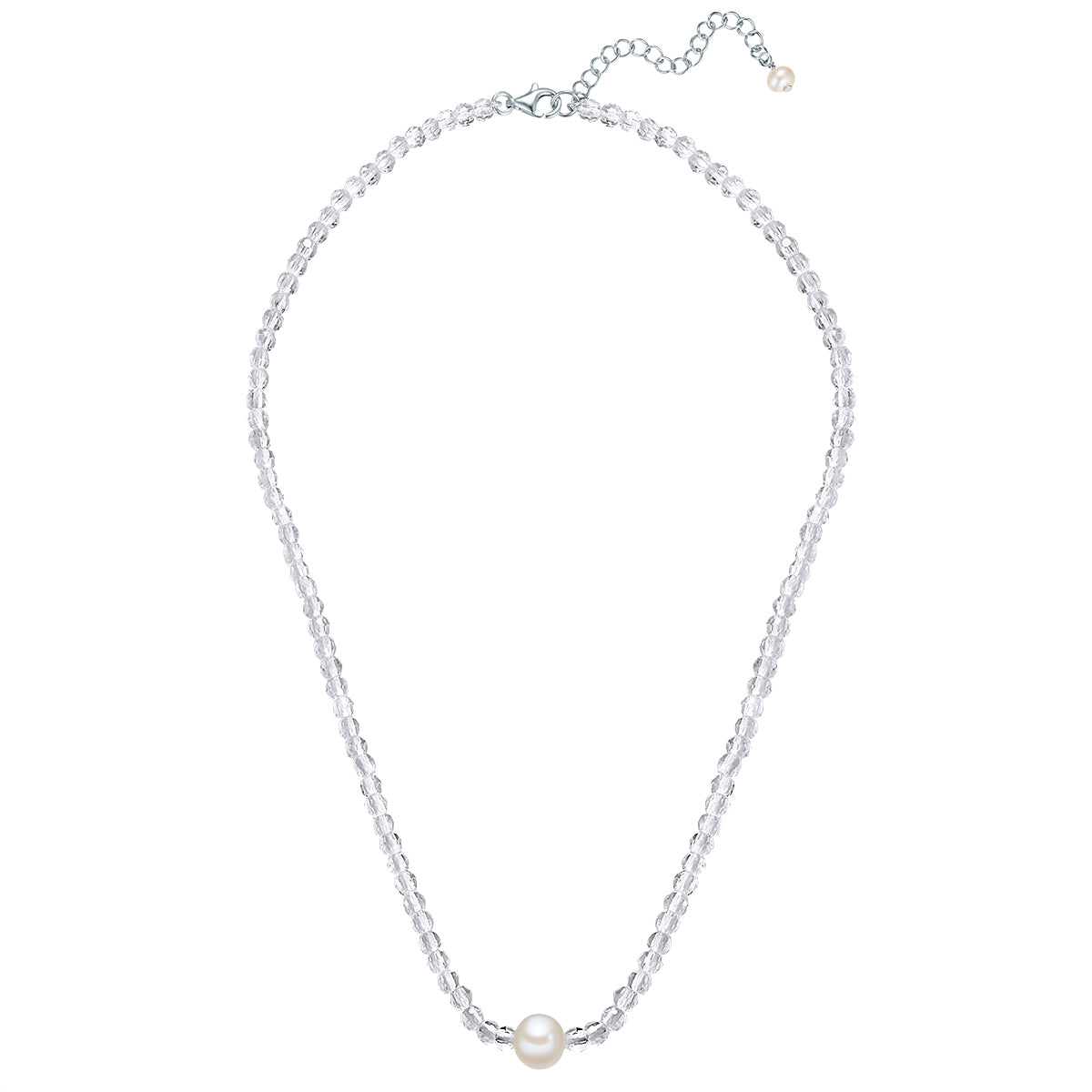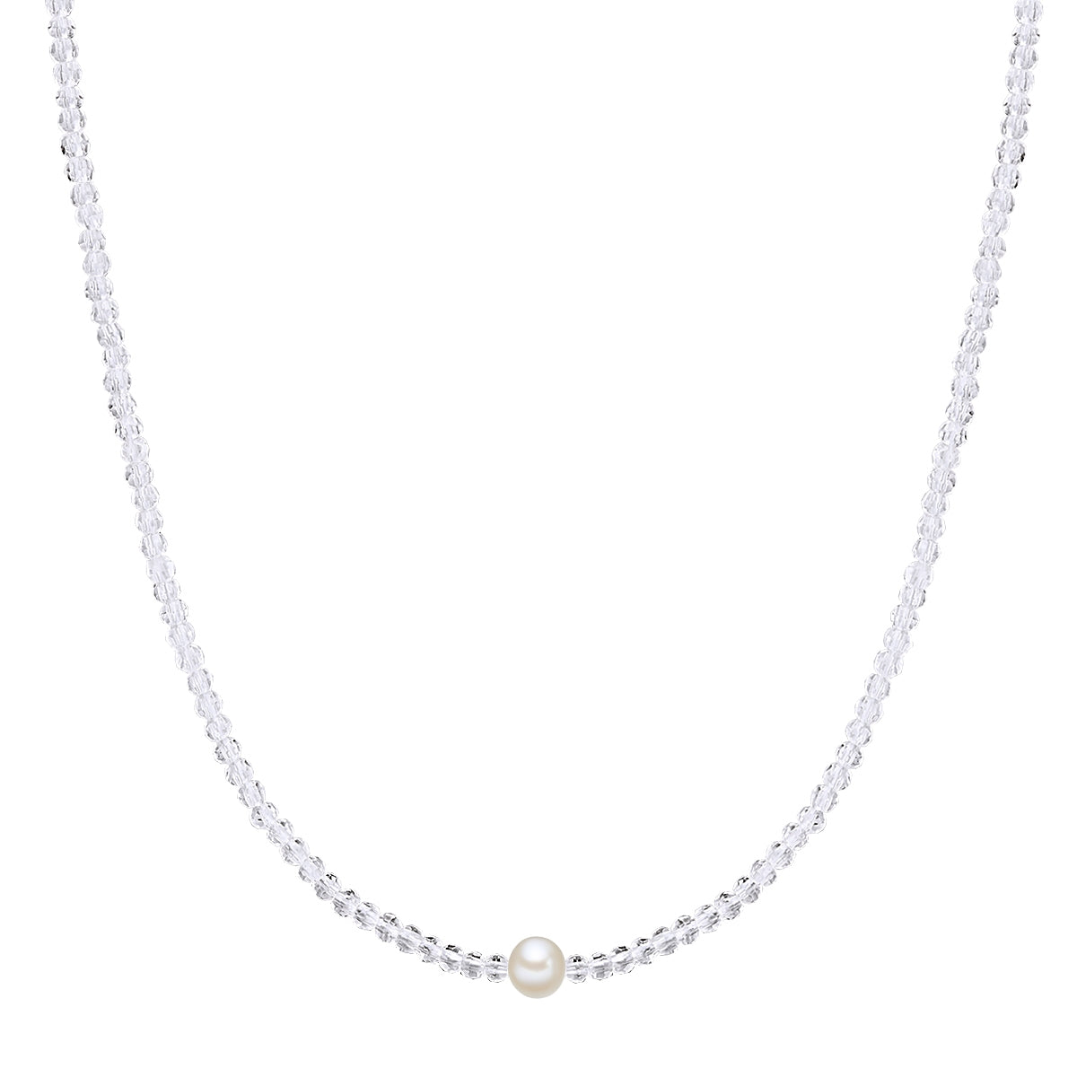 Kette Sterling Silber Süßwasser-Zuchtperle weiß Quarzkristall weiß