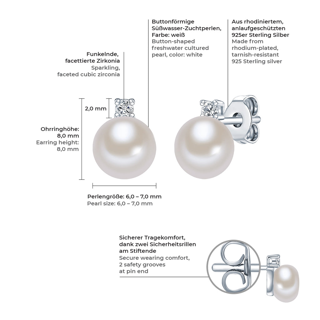 Ohrstecker Sterling Silber Süßwasser-Zuchtperle weiß Zirkonia weiß