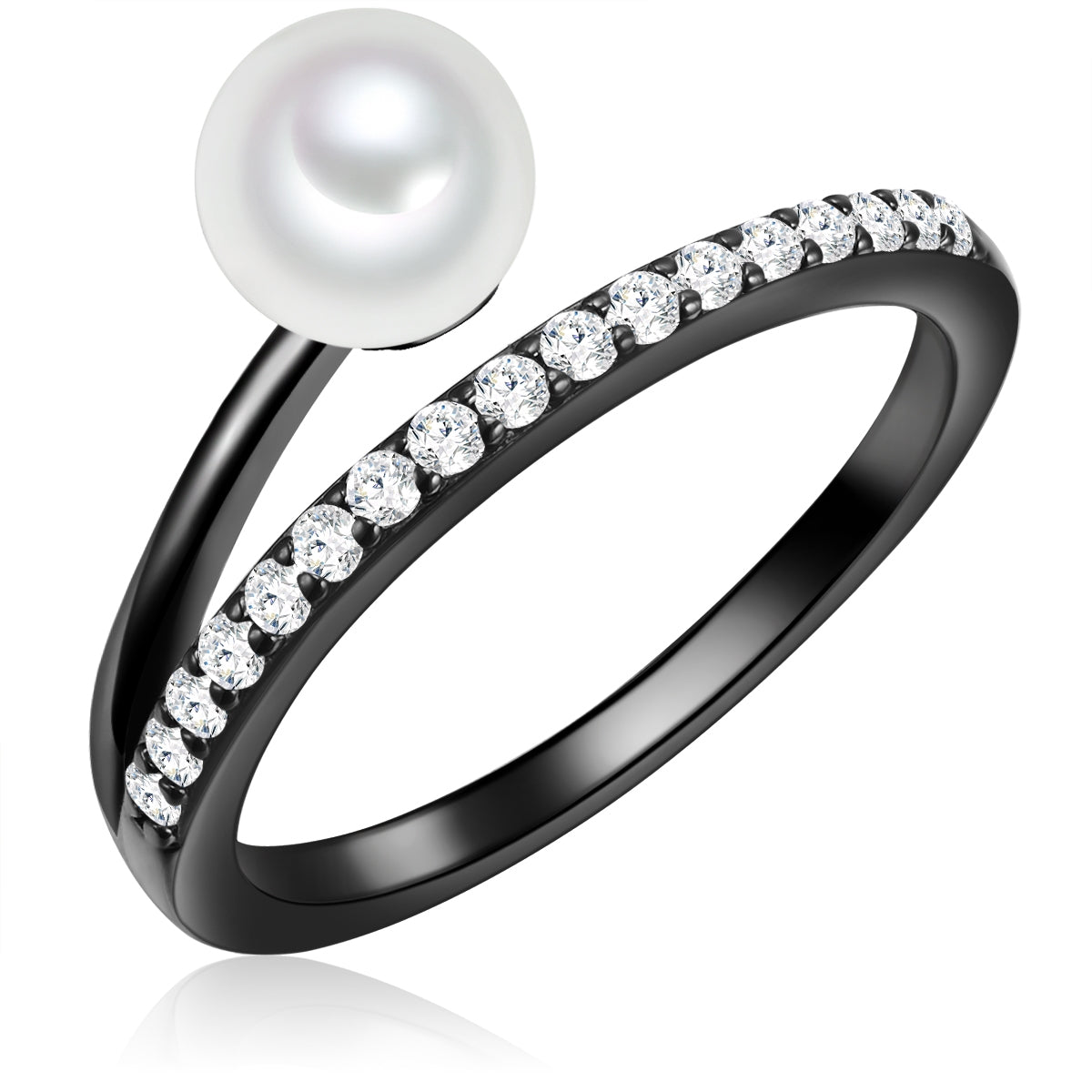 Ring Sterling Silber schwarz Süßwasser Zuchtperle weiß Zirkonia weiß