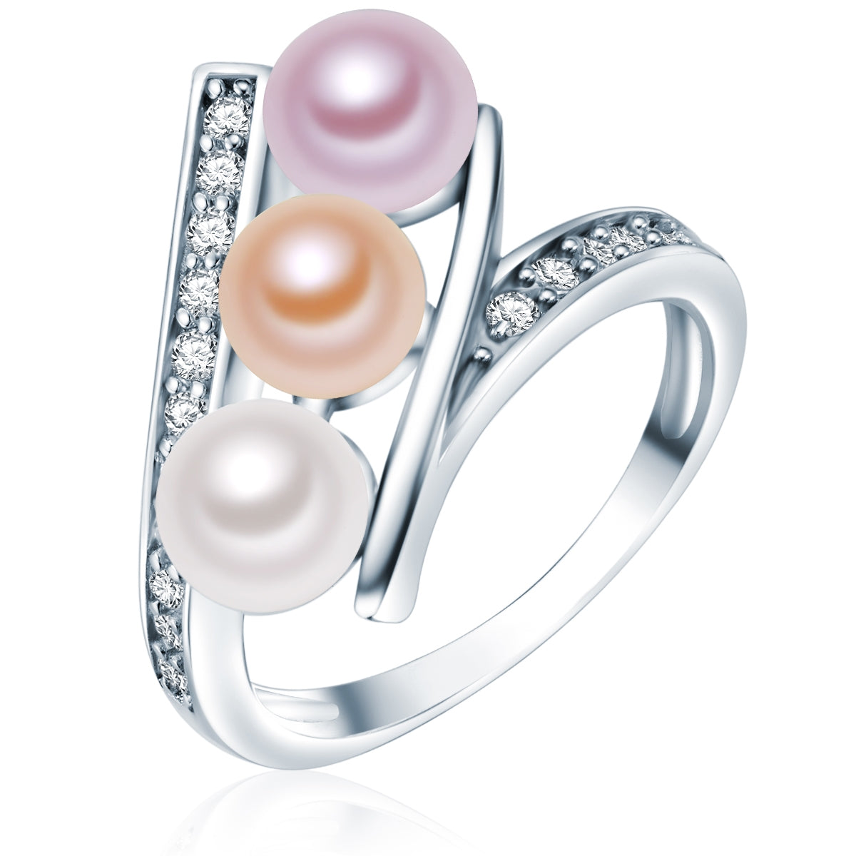 Ring Sterling Silber Süßwasser-Zuchtperle multicolor Zirkonia weiß