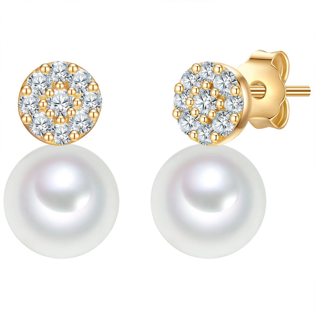 Ohrstecker Sterling Silber gelbgold Süßwasser Zuchtperle weiß Zirkonia weiß