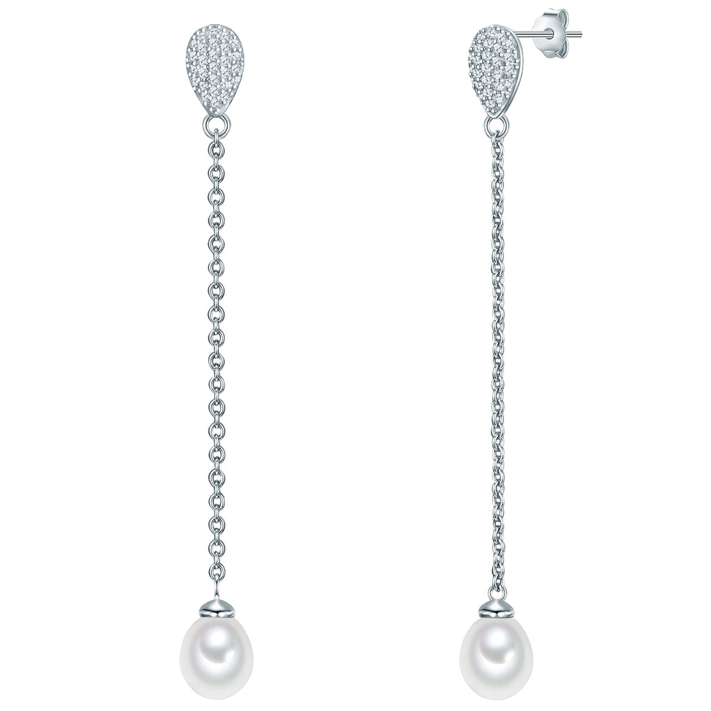 Ohrhänger Sterling Silber Süßwasser Zuchtperle weiß Zirkonia weiß