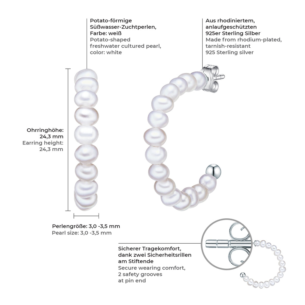 Creolen Sterling Silber Süßwasser-Zuchtperlen weiß